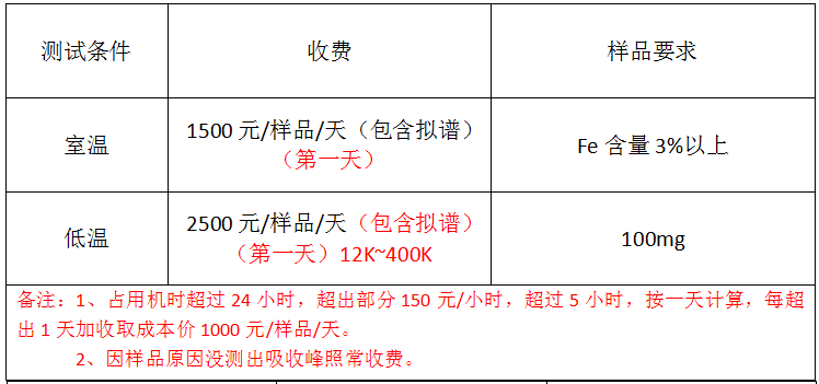 測試Fe譜、Al譜自旋、價態(tài),常溫低溫12K,含F(xiàn)e量3%以上,粉末100mg以上,薄膜φ10*0.7